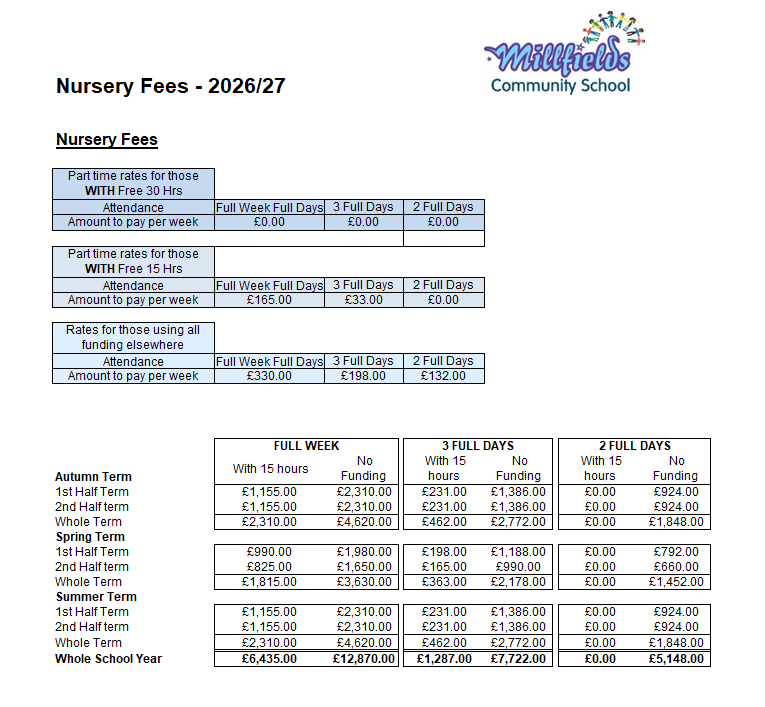 Part time hours are 8:40am-12pm (lunch not included), we still ask parents on low income to apply for Early years pupil premium/free school meals even if they do not have lunch at school as the school receives extra funding for resources for your child. (click the link for information/how to apply https://education.hackney.gov.uk/content/apply-free-school-meals)